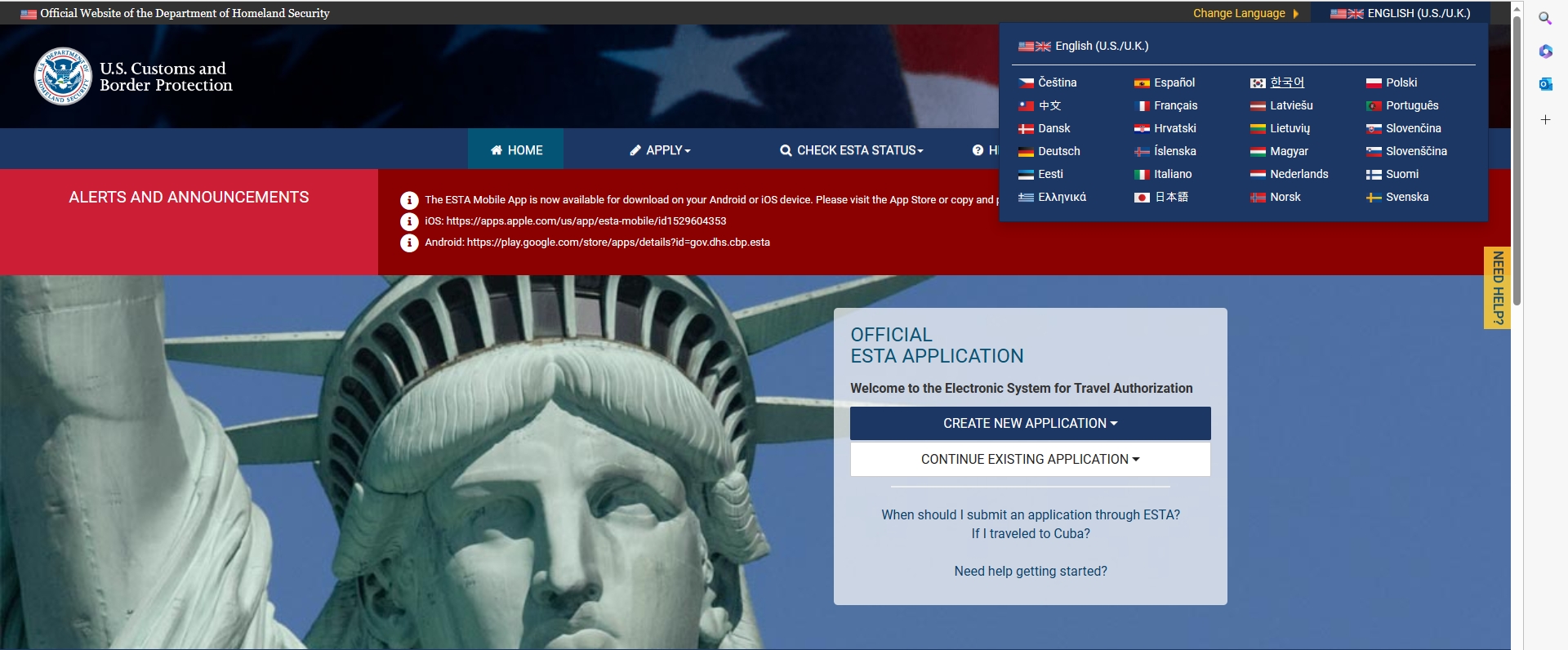 인터넷 검색창에 ESTA라고 검색하면 홈페이지가 나옵니다.
