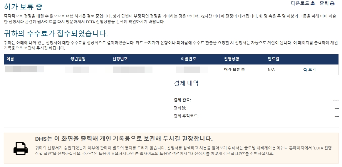 이제 이스타 비자 발급 신청은 전부 완료되었습니다. 마지막으로 이메일만 기다리면 됩니다.