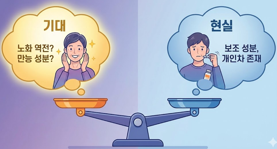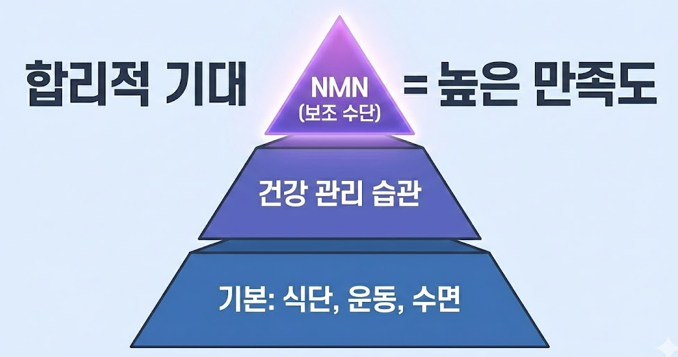 NMN은 만능 성분이 아니라, 조건과 개인차에 따라 체감이 달라지는 보충 성분입니다.