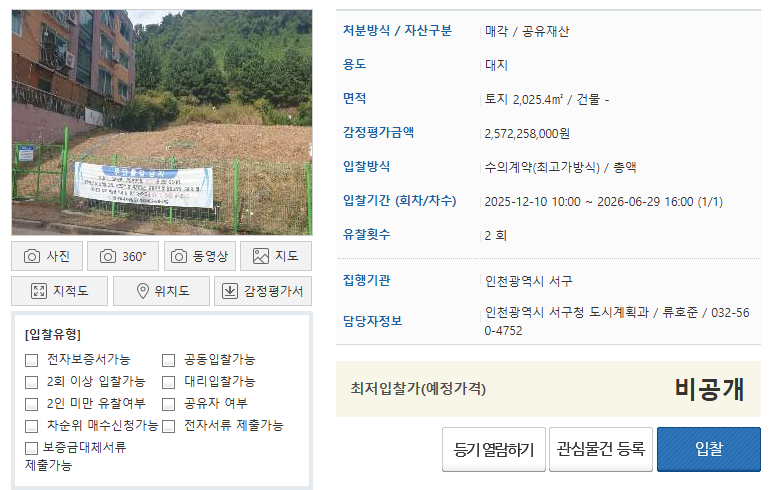 공매물건은 유형에 따라 일반경쟁입찰, 지정가 입찰 등이 있습니다. 입찰 방식에 따라 입찰가 전략을 달리해야 하고, 응찰 자격 조건도 확인이 필요합니다. 이런 조건은 상세 페이지에서 대부분 명시되어 있습니다.