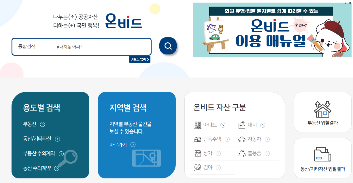 1) 온비드 홈페이지 접속 및 기본 검색