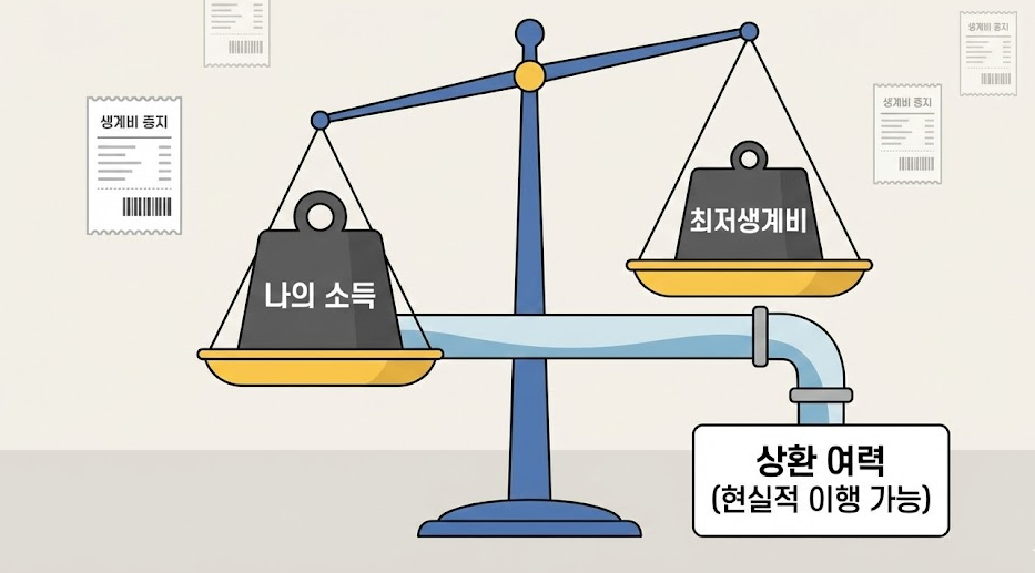 - 소득에서 최저생계비를 제외하고 남는 금액으로 일정 기간 상환 계획을 실현할 수 있는 경우