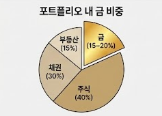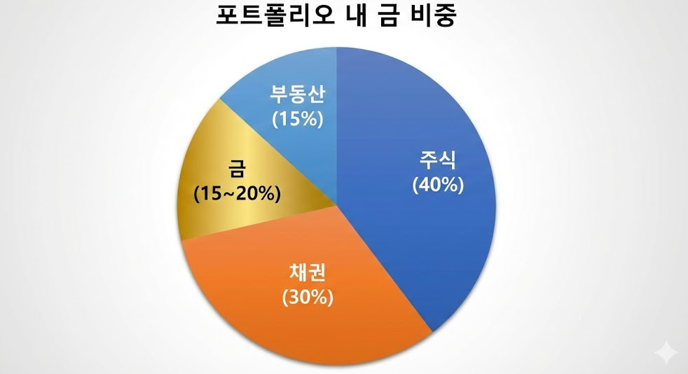 금에 모든 자산을 투자하는 건 위험합니다. 전체 자산의 10~20% 정도를 금으로 보유하면서 위험을 분산시키는 게 좋아요. 주식, 채권, 부동산 등과 함께 포트폴리오를 구성하면 안정적인 자산 관리가 가능합니다.