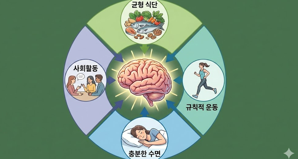 두뇌를 훈련하는 생활습관도 중요합니다. 독서, 퍼즐, 새로운 취미 배우기 등 뇌를 자극하는 활동을 꾸준히 하면 인지 기능 유지에 도움이 돼요. 사람들과 만나 대화하는 것도 훌륭한 뇌 운동이죠.