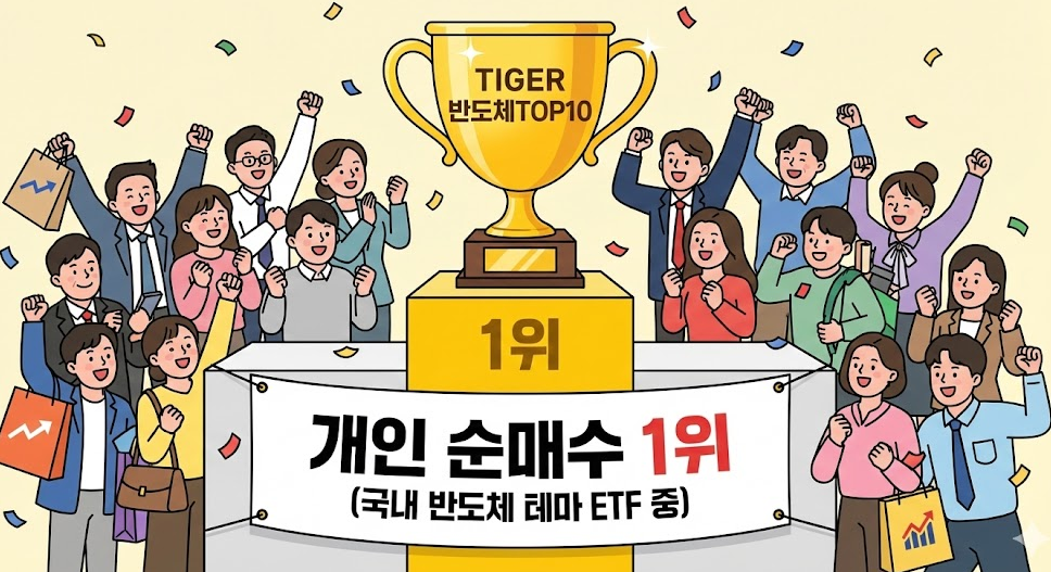 | TIGER 반도체TOP10 | 기본형, 시총 상위 10개 | 3조 4,445억 원 |