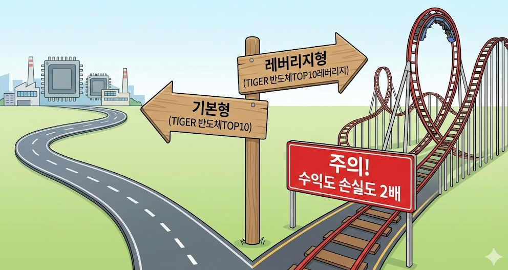 삼성전자만 투자하면 삼성전자의 성과에만 의존하게 되지만, TIGER 반도체TOP10은 SK하이닉스를 포함해 10개 종목에 분산 투자됩니다. 삼성전자가 부진해도 SK하이닉스나 다른 종목이 상승하면 손실을 완화할 수 있어요. 반대로 삼성전자만 급등할 때는 삼성전자 직접 투자가 더 유리할 수 있습니다. 분산을 원하면 ETF, 집중 투자를 원하면 개별 주식을 선택하세요.