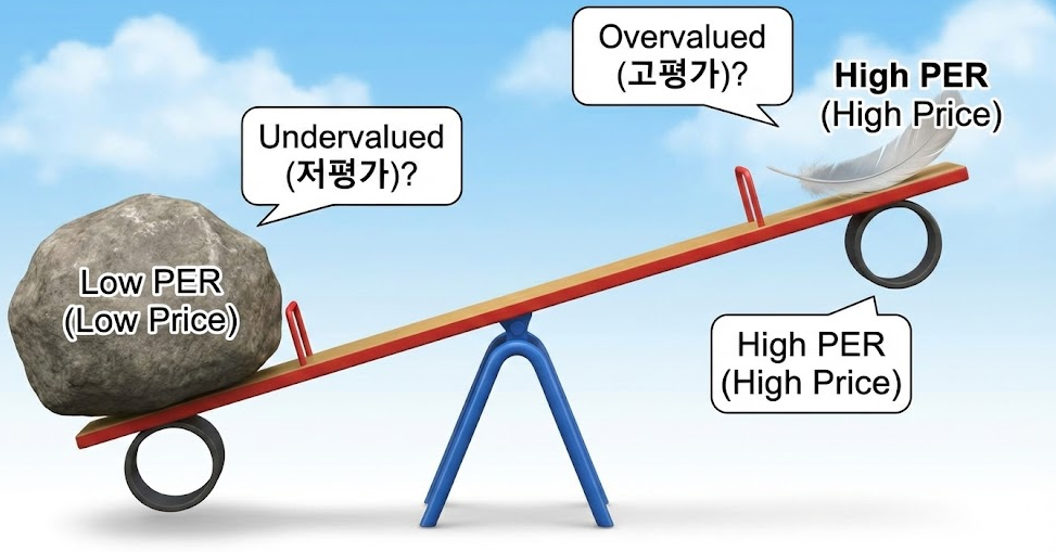 일반적으로 PER가 낮으면 이익에 비해 주가가 저평가된 종목으로, 높으면 고평가된 종목으로 간주돼요. 하지만 무조건 낮다고 좋은 것은 아니고, 높다고 나쁜 것도 아닙니다. 그 이유는 뒤에서 자세히 설명할게요.